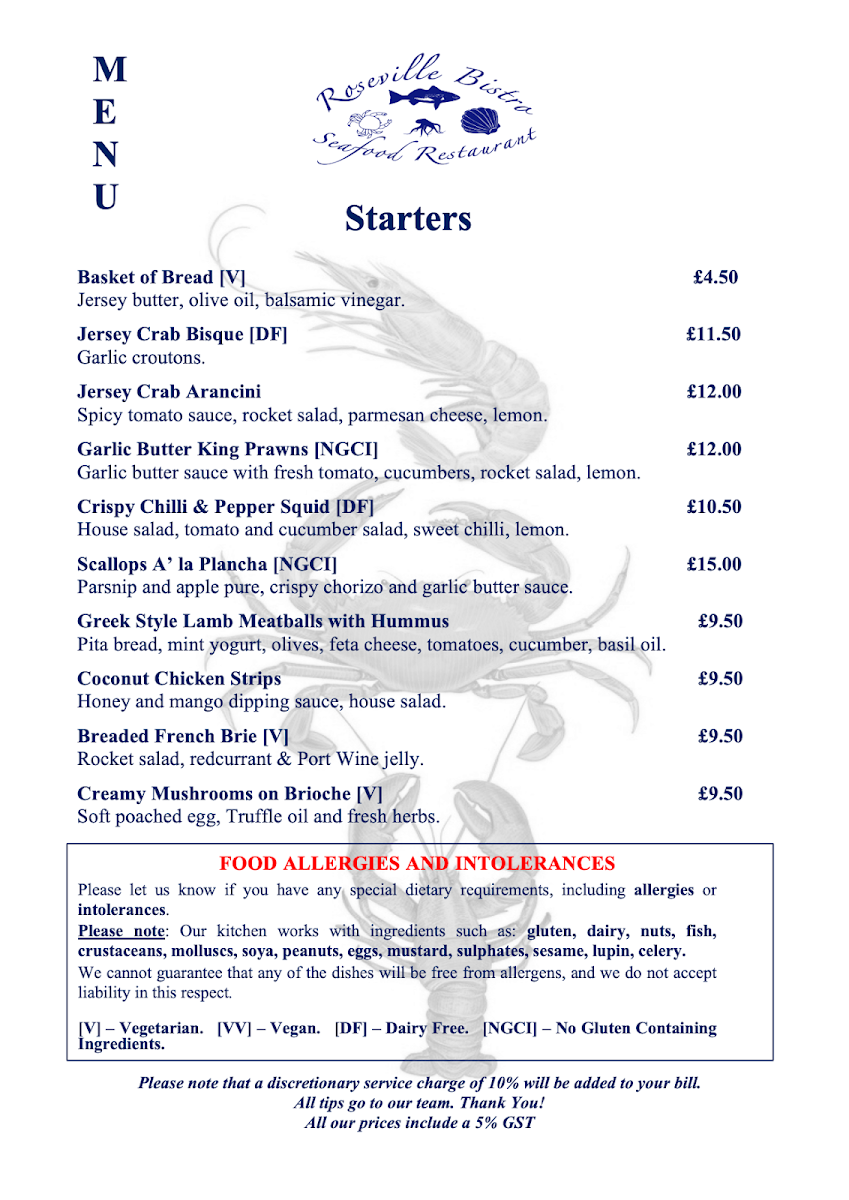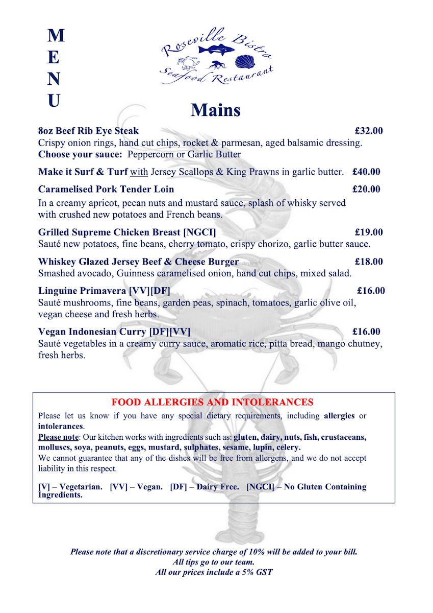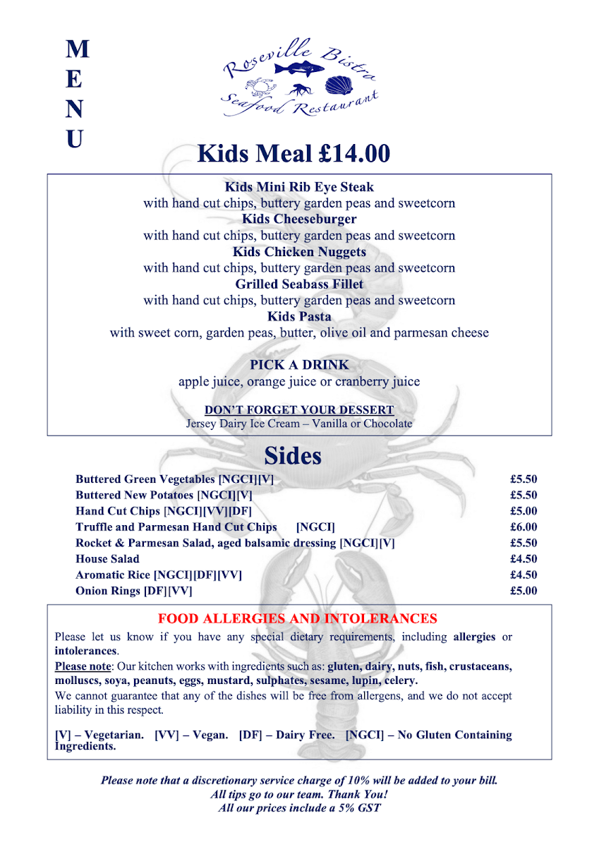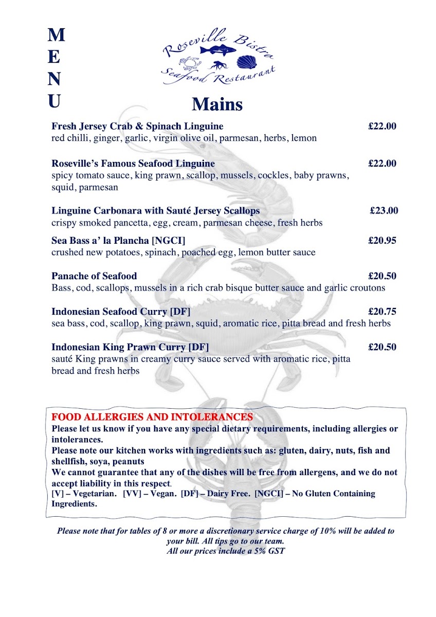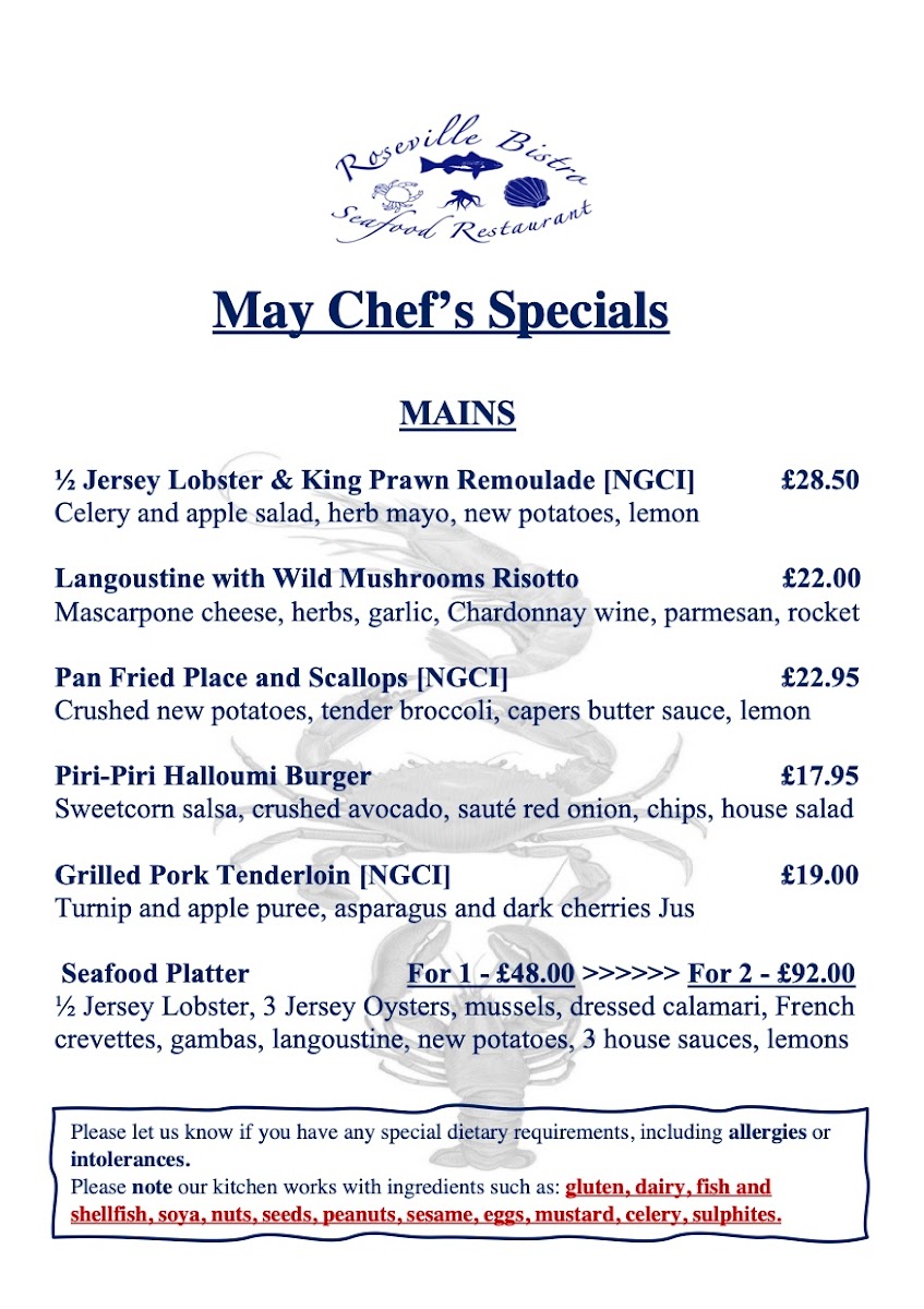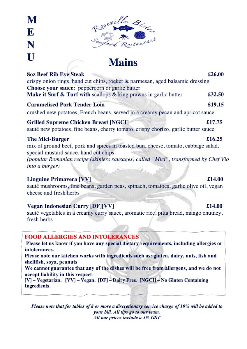 Roseville Bistro offers a delightful menu, showcasing an array of fresh, expertly prepared dishes that cater to a variety of tastes. Seafood lovers will be particularly pleased with the Famous Seafood Linguine, a rich and flavorful dish that brings together the best of the ocean. For a more indulgent experience, the 1/2 Lobster with Garlic Sauce and King Prawns is a must-try, offering a perfect blend of tenderness and savory richness. The Pan Fried Lemon Sole and Scallops is another standout, with the delicate fish and scallops prepared to perfection, delivering a light yet satisfying taste. For those with an adventurous palate, the Speciality Oysters provide a fresh, briny bite that pairs beautifully with a crisp white wine. On the heartier side, the Supreme Chicken Breast is a flavorful and juicy option, ideal for anyone looking for a comforting main. As a starter, the Meatballs Starter offers a satisfying beginning to any meal, with its tender meatballs coated in a rich tomato sauce. Whether you're after seafood, poultry, or something in between, Roseville Bistro’s menu delivers a balanced and delicious dining experience.